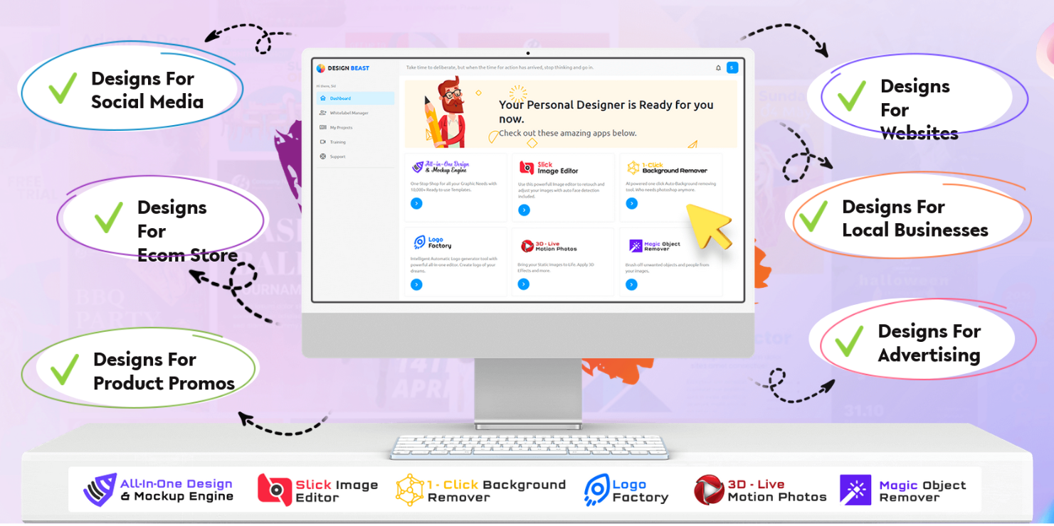 DesignBeast is a revolutionary software suite that combines six powerful design tools into one intuitive platform. Created by veteran marketers Paul Ponna and Sid Diwar, this product is aimed at beginners, marketers, and even advanced designers who want a smarter, faster way to design.